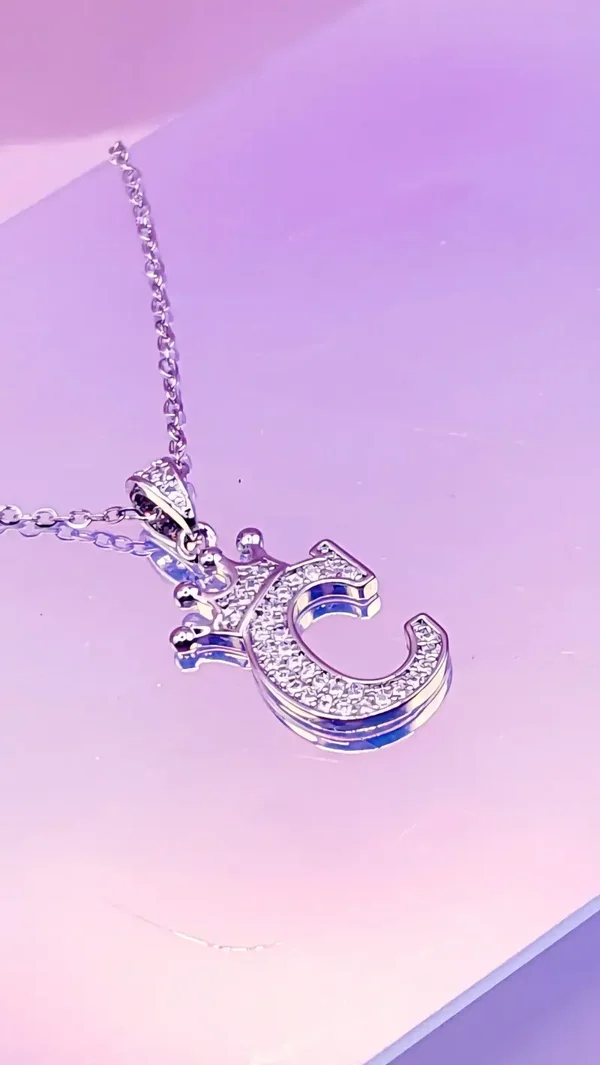 The Initial Elegance Necklace is crafted from high-quality 925 sterling silver and features a beautifully polished pendant shaped like your chosen letter. Each initial is adorned with hand-set premium crystals that catch the light with every move. The crown-shaped top detail adds a subtle royal touch, turning this necklace into a timeless statement of personal style.